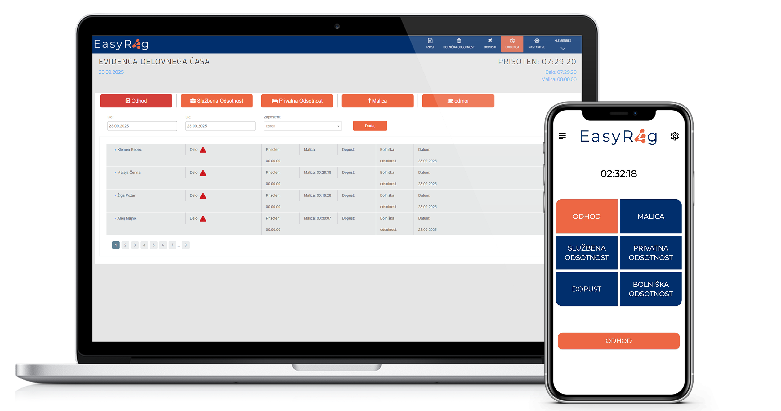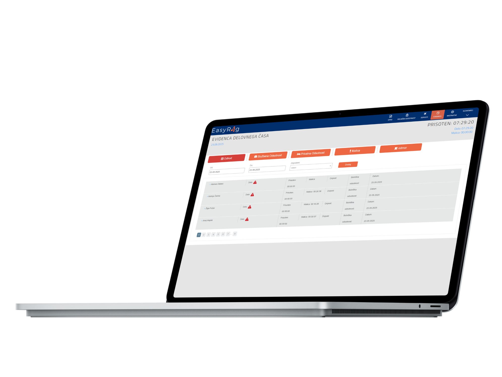 • Hitro registracijo prihodov, odhodov, odmorov in nadur – prek računalnika ali mobilne aplikacije.